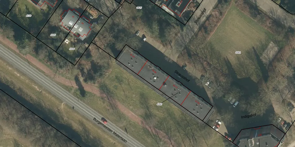 Het perceel waarop Strausshof 83 staat heeft een oppervlakte van 891 m². Dit is een groot perceel. De perceeloppervlakte wordt geregistreerd door het Kadaster. Gedetailleerde informatie over de maten van dit perceel kunt u vinden in het rapport Kadastrale kaart met maatvoering van Strausshof 83.