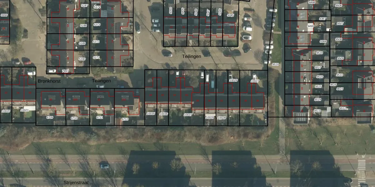 Het perceel waarop Teilingen 26 staat heeft een oppervlakte van 564 m². Dit is een groot perceel. De perceeloppervlakte wordt geregistreerd door het Kadaster. Gedetailleerde informatie over de maten van dit perceel kunt u vinden in het rapport Kadastrale kaart met maatvoering van Teilingen 26.