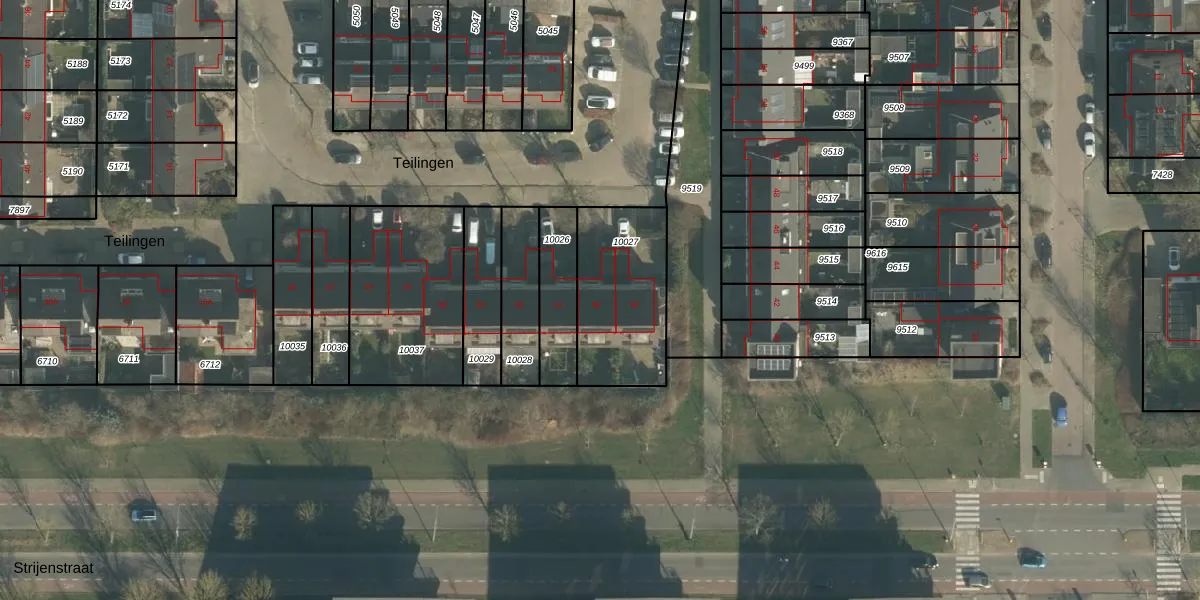 Het perceel waarop Teilingen 36 staat heeft een oppervlakte van 443 m². Dit is een groot perceel. De perceeloppervlakte wordt geregistreerd door het Kadaster. Gedetailleerde informatie over de maten van dit perceel kunt u vinden in het rapport Kadastrale kaart met maatvoering van Teilingen 36.