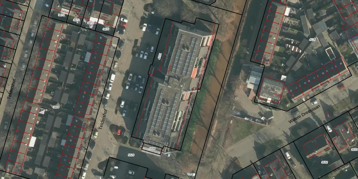 Het perceel waarop Teldershof 134 staat heeft een oppervlakte van 2093 m². Dit is een zeer groot perceel. De perceeloppervlakte wordt geregistreerd door het Kadaster. Gedetailleerde informatie over de maten van dit perceel kunt u vinden in het rapport Kadastrale kaart met maatvoering van Teldershof 134.