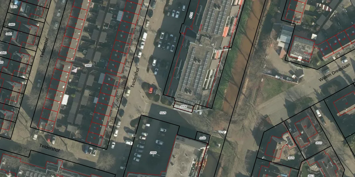 Het perceel waarop Teldershof 142 staat heeft een oppervlakte van 2093 m². Dit is een zeer groot perceel. De perceeloppervlakte wordt geregistreerd door het Kadaster. Gedetailleerde informatie over de maten van dit perceel kunt u vinden in het rapport Kadastrale kaart met maatvoering van Teldershof 142.