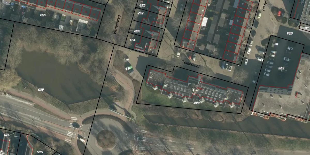 Het perceel waarop Teldershof 36 staat heeft een oppervlakte van 1525 m². Dit is een zeer groot perceel. De perceeloppervlakte wordt geregistreerd door het Kadaster. Gedetailleerde informatie over de maten van dit perceel kunt u vinden in het rapport Kadastrale kaart met maatvoering van Teldershof 36.