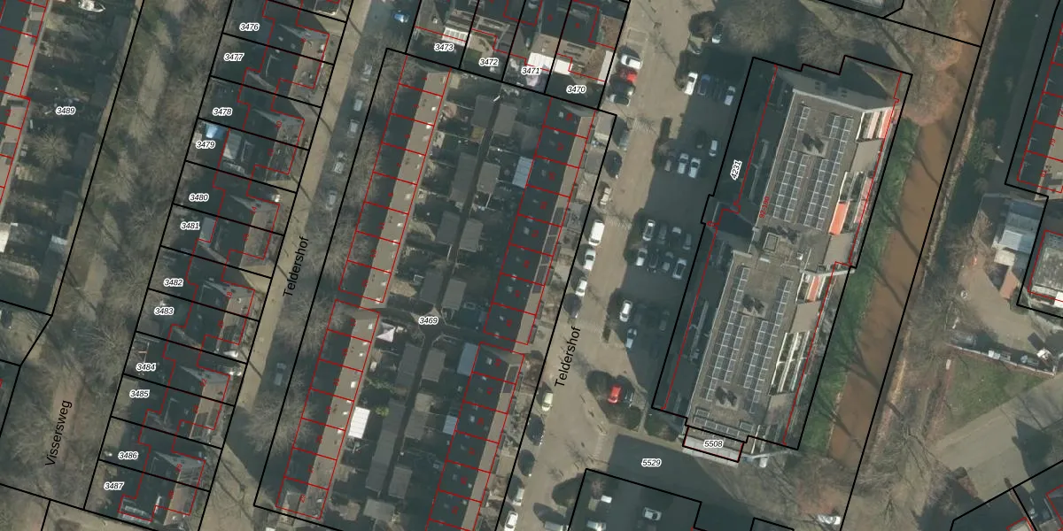 Het perceel waarop Teldershof 49 staat heeft een oppervlakte van 4033 m². Dit is een zeer groot perceel. De perceeloppervlakte wordt geregistreerd door het Kadaster. Gedetailleerde informatie over de maten van dit perceel kunt u vinden in het rapport Kadastrale kaart met maatvoering van Teldershof 49.