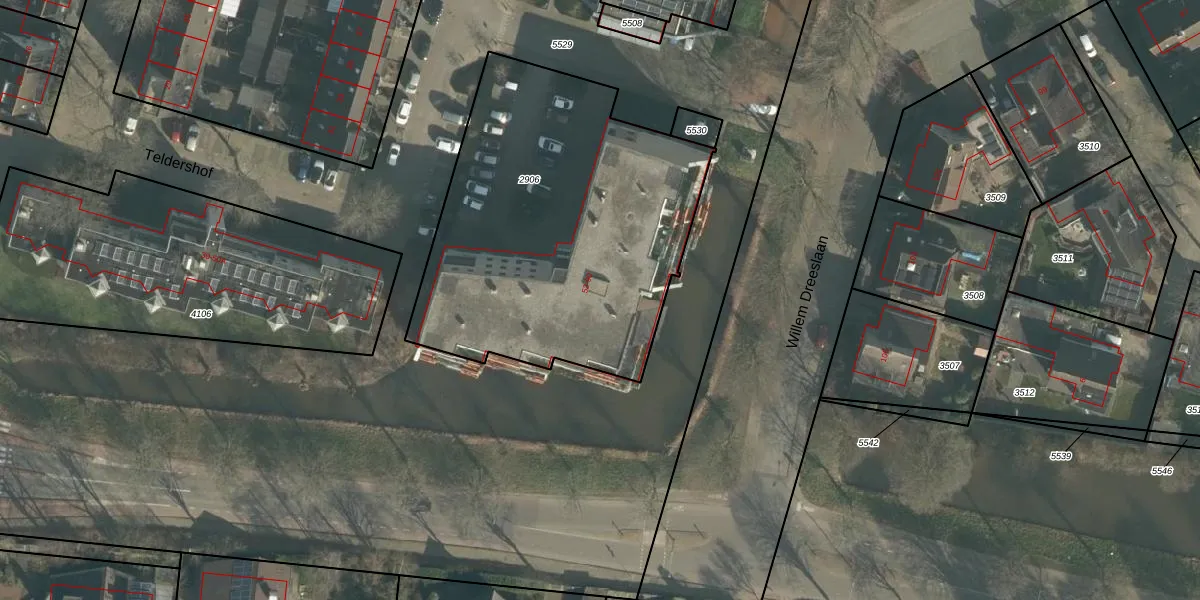 Het perceel waarop Teldershof 56 staat heeft een oppervlakte van 1838 m². Dit is een zeer groot perceel. De perceeloppervlakte wordt geregistreerd door het Kadaster. Gedetailleerde informatie over de maten van dit perceel kunt u vinden in het rapport Kadastrale kaart met maatvoering van Teldershof 56.