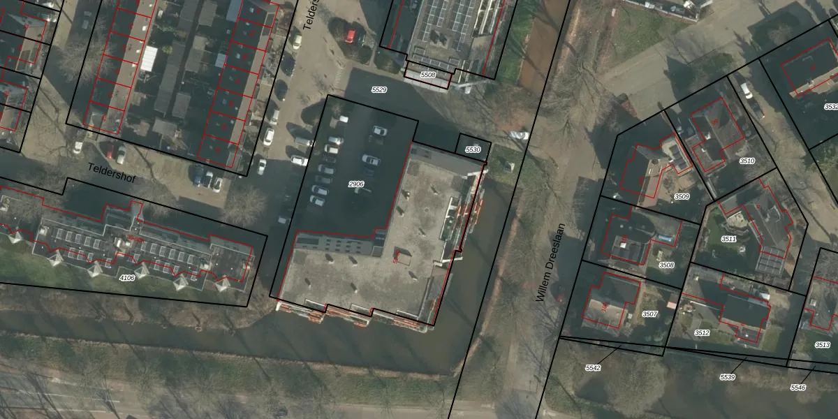Het perceel waarop Teldershof 68 staat heeft een oppervlakte van 1838 m². Dit is een zeer groot perceel. De perceeloppervlakte wordt geregistreerd door het Kadaster. Gedetailleerde informatie over de maten van dit perceel kunt u vinden in het rapport Kadastrale kaart met maatvoering van Teldershof 68.