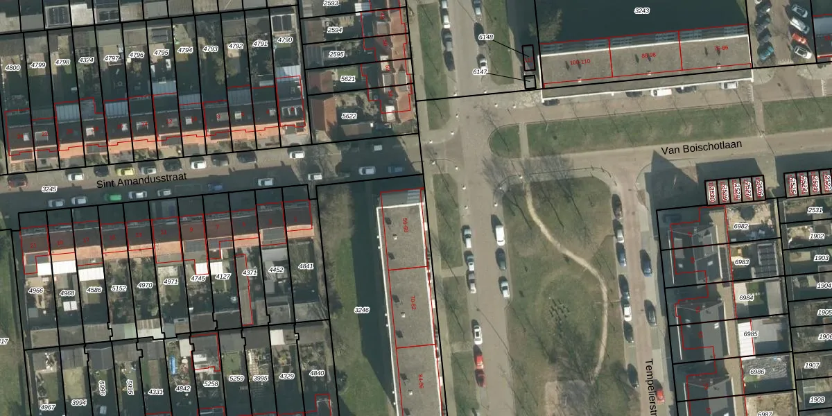 Het perceel waarop Tempelierstraat 58 staat heeft een oppervlakte van 1686 m². Dit is een zeer groot perceel. De perceeloppervlakte wordt geregistreerd door het Kadaster. Gedetailleerde informatie over de maten van dit perceel kunt u vinden in het rapport Kadastrale kaart met maatvoering van Tempelierstraat 58.
