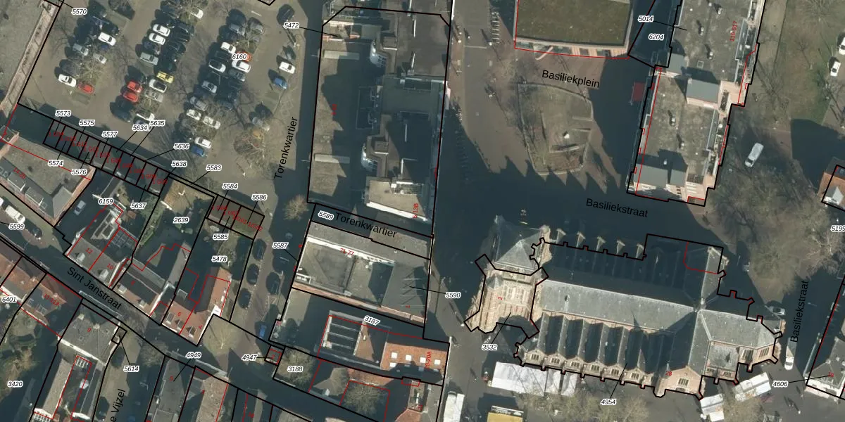 Het perceel waarop Torenstraat 5 staat heeft een oppervlakte van 1516 m². Dit is een zeer groot perceel. De perceeloppervlakte wordt geregistreerd door het Kadaster. Gedetailleerde informatie over de maten van dit perceel kunt u vinden in het rapport Kadastrale kaart met maatvoering van Torenstraat 5.