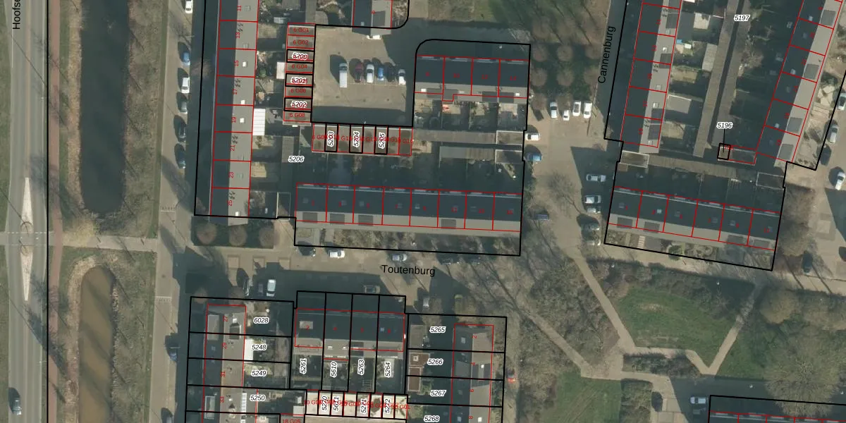 Toutenburg 9 is gelegen op kadastraal perceel OTH01R5206. Deze kadastrale aanduiding is uniek en wordt gebruikt door het Kadaster om eigendomsrechten en andere zakelijke rechten vast te leggen. Het perceel maakt onderdeel uit van de kadastrale gemeente Oosterhout.
