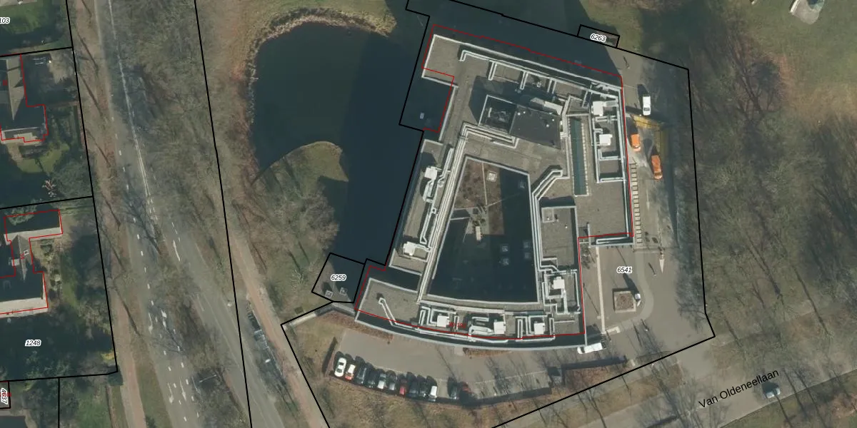 Het perceel waarop Van Oldeneellaan 162 staat heeft een oppervlakte van 6835 m². Dit is een zeer groot perceel. De perceeloppervlakte wordt geregistreerd door het Kadaster. Gedetailleerde informatie over de maten van dit perceel kunt u vinden in het rapport Kadastrale kaart met maatvoering van Van Oldeneellaan 162.