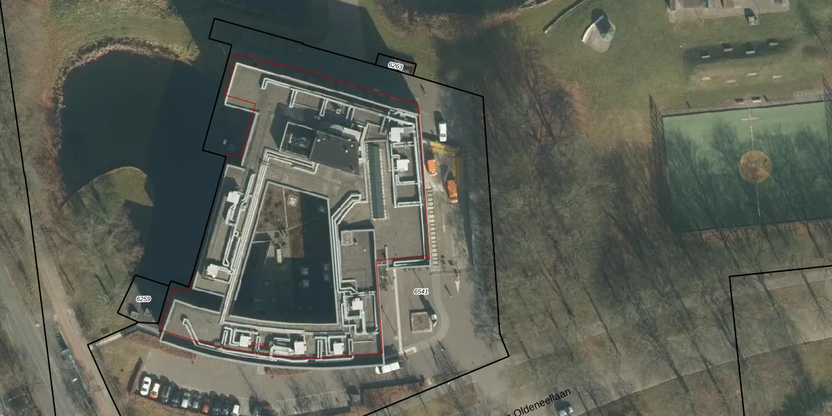 Het perceel waarop Van Oldeneellaan 186 staat heeft een oppervlakte van 6835 m². Dit is een zeer groot perceel. De perceeloppervlakte wordt geregistreerd door het Kadaster. Gedetailleerde informatie over de maten van dit perceel kunt u vinden in het rapport Kadastrale kaart met maatvoering van Van Oldeneellaan 186.