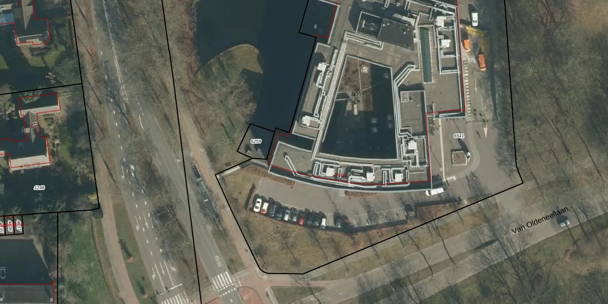 Het perceel waarop Van Oldeneellaan 60 staat heeft een oppervlakte van 6835 m². Dit is een zeer groot perceel. De perceeloppervlakte wordt geregistreerd door het Kadaster. Gedetailleerde informatie over de maten van dit perceel kunt u vinden in het rapport Kadastrale kaart met maatvoering van Van Oldeneellaan 60.