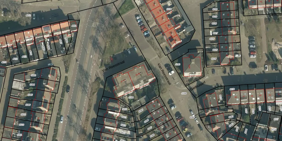 Van Reesstraat 25 is gelegen op kadastraal perceel OTH01S5164. Deze kadastrale aanduiding is uniek en wordt gebruikt door het Kadaster om eigendomsrechten en andere zakelijke rechten vast te leggen. Het perceel maakt onderdeel uit van de kadastrale gemeente Oosterhout.