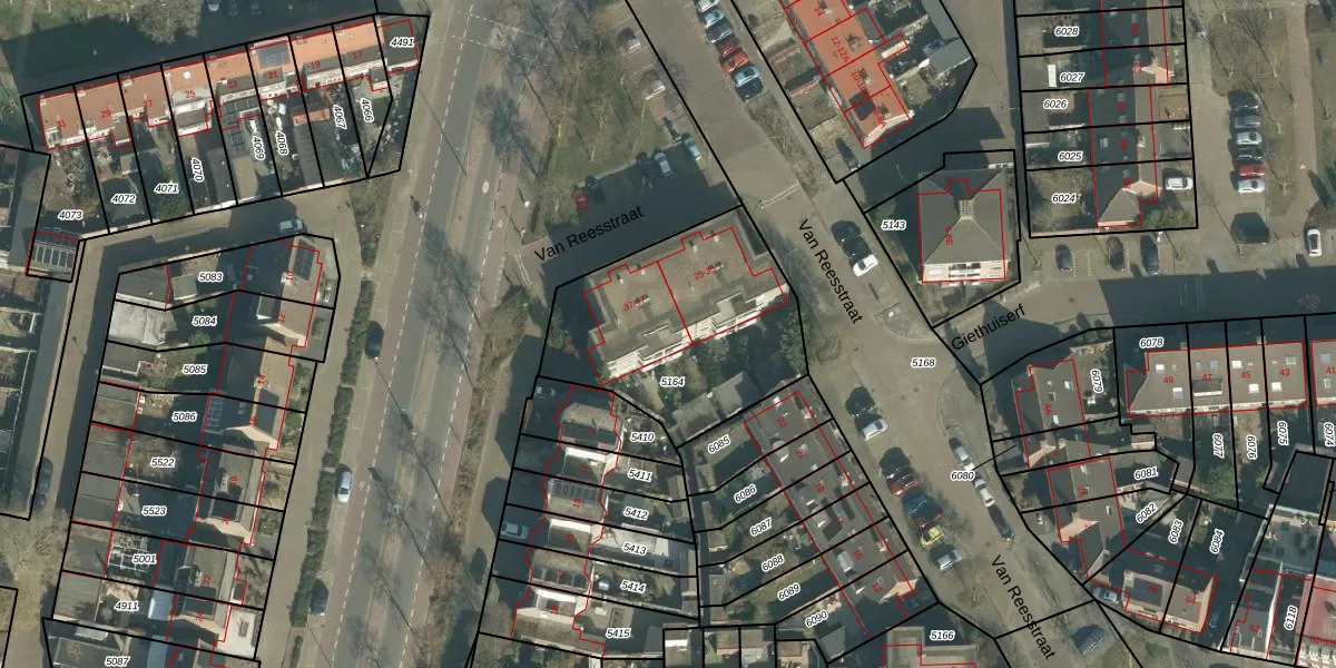Van Reesstraat 45 is gelegen op kadastraal perceel OTH01S5164. Deze kadastrale aanduiding is uniek en wordt gebruikt door het Kadaster om eigendomsrechten en andere zakelijke rechten vast te leggen. Het perceel maakt onderdeel uit van de kadastrale gemeente Oosterhout.
