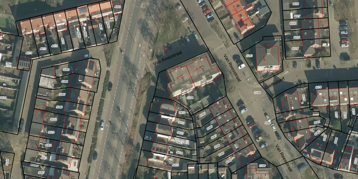 Van Reesstraat 47 is gelegen op kadastraal perceel OTH01S5164. Deze kadastrale aanduiding is uniek en wordt gebruikt door het Kadaster om eigendomsrechten en andere zakelijke rechten vast te leggen. Het perceel maakt onderdeel uit van de kadastrale gemeente Oosterhout.