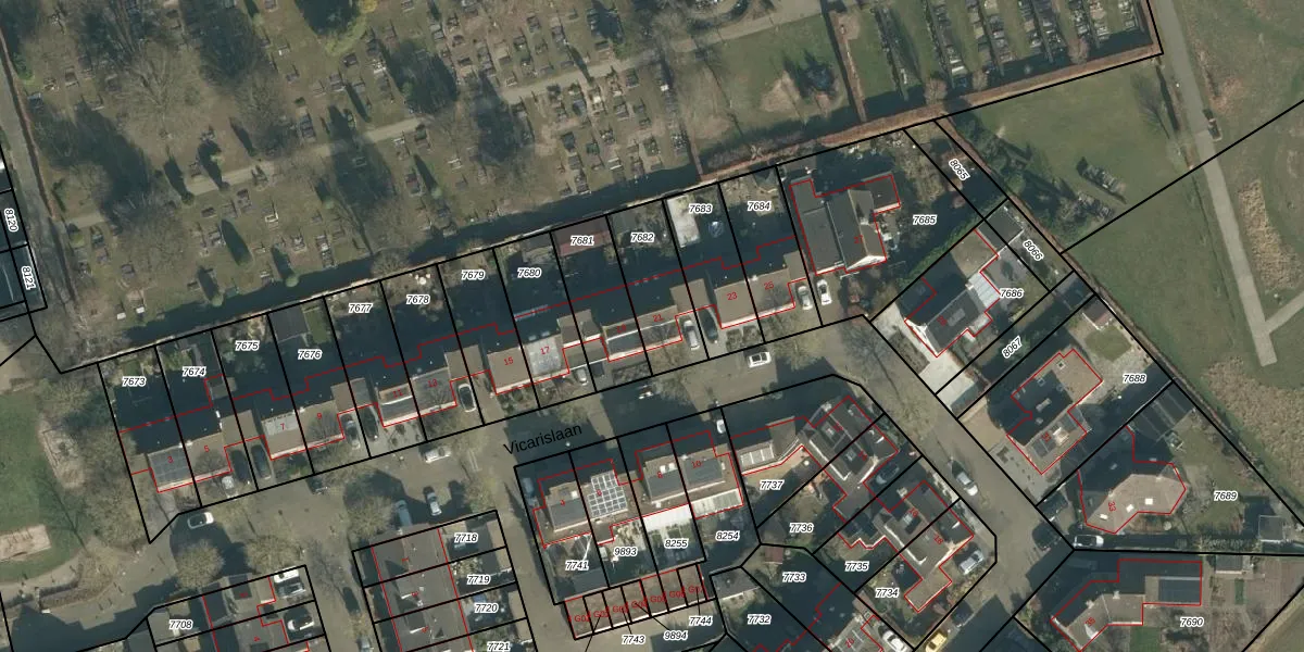 Het perceel waarop Vicarislaan 21 staat heeft een oppervlakte van 232 m². Dit is een middelgroot perceel. De perceeloppervlakte wordt geregistreerd door het Kadaster. Gedetailleerde informatie over de maten van dit perceel kunt u vinden in het rapport Kadastrale kaart met maatvoering van Vicarislaan 21.