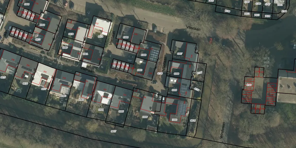 Het perceel waarop Vlierlaan 228 staat heeft een oppervlakte van 197 m². Dit is een middelgroot perceel. De perceeloppervlakte wordt geregistreerd door het Kadaster. Gedetailleerde informatie over de maten van dit perceel kunt u vinden in het rapport Kadastrale kaart met maatvoering van Vlierlaan 228.
