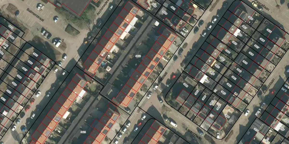 Het perceel waarop Voltastraat 12 staat heeft een oppervlakte van 3207 m². Dit is een zeer groot perceel. De perceeloppervlakte wordt geregistreerd door het Kadaster. Gedetailleerde informatie over de maten van dit perceel kunt u vinden in het rapport Kadastrale kaart met maatvoering van Voltastraat 12.