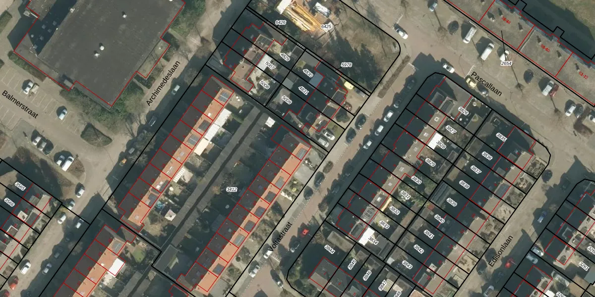 Het perceel waarop Voltastraat 2 staat heeft een oppervlakte van 3207 m². Dit is een zeer groot perceel. De perceeloppervlakte wordt geregistreerd door het Kadaster. Gedetailleerde informatie over de maten van dit perceel kunt u vinden in het rapport Kadastrale kaart met maatvoering van Voltastraat 2.