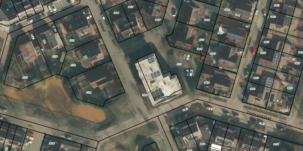 Het adres is gelegen op perceel 3383 in de sectie C en de kadastrale gemeente Oosterhout. De kadastrale aanduiding is aldus OTH01-C-3383. Het perceel is 473 m² groot. Dat is kleiner dan de gemiddelde perceeloppervlakte in Oosterhout, dat op 2771,9 m² ligt. Het kleinste perceel in de kadastrale gemeente is 0 m² groot. De grootste perceeloppervlakte is 75,9 ha. Er zijn 17 adressen aanwezig op het perceel. De huidige grenzen van het perceel zijn digitaal in de Basisregistratie Kadaster (BRK) geregistreerd op 24-04-2006.