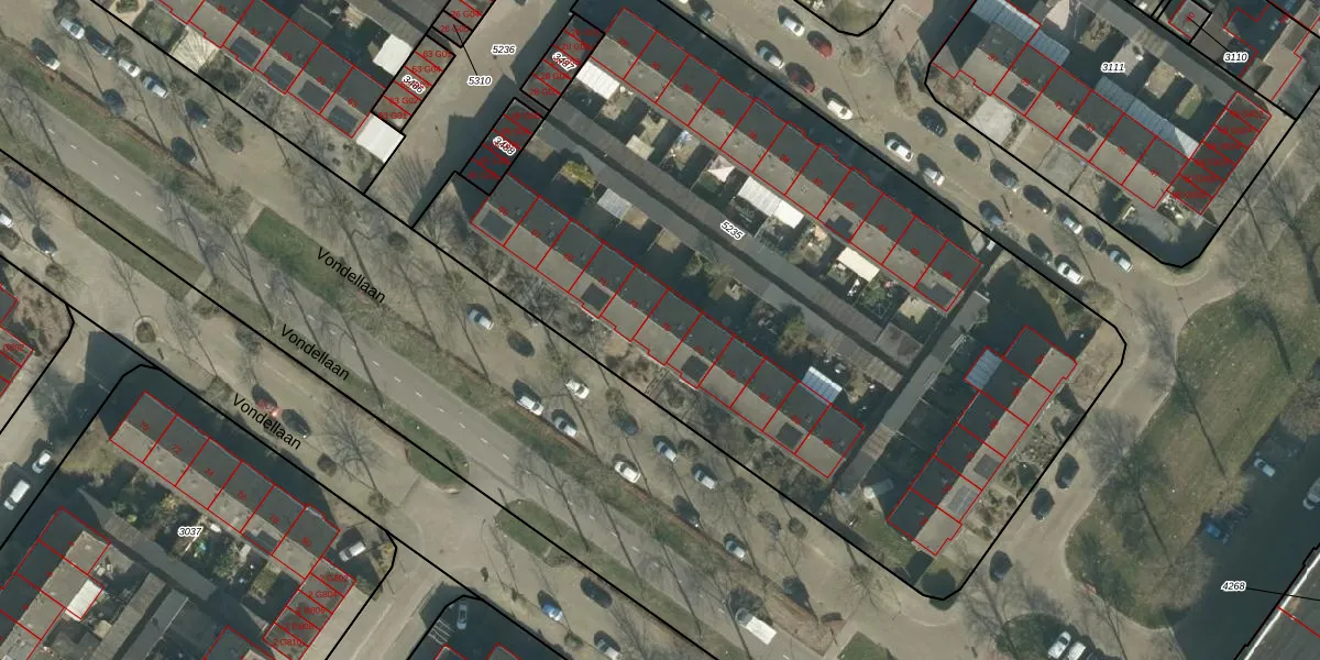 Het perceel waarop Vondellaan 75 staat heeft een oppervlakte van 4758 m². Dit is een zeer groot perceel. De perceeloppervlakte wordt geregistreerd door het Kadaster. Gedetailleerde informatie over de maten van dit perceel kunt u vinden in het rapport Kadastrale kaart met maatvoering van Vondellaan 75.