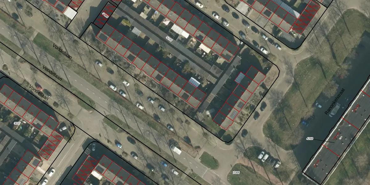Het perceel waarop Vondellaan 83 staat heeft een oppervlakte van 4758 m². Dit is een zeer groot perceel. De perceeloppervlakte wordt geregistreerd door het Kadaster. Gedetailleerde informatie over de maten van dit perceel kunt u vinden in het rapport Kadastrale kaart met maatvoering van Vondellaan 83.