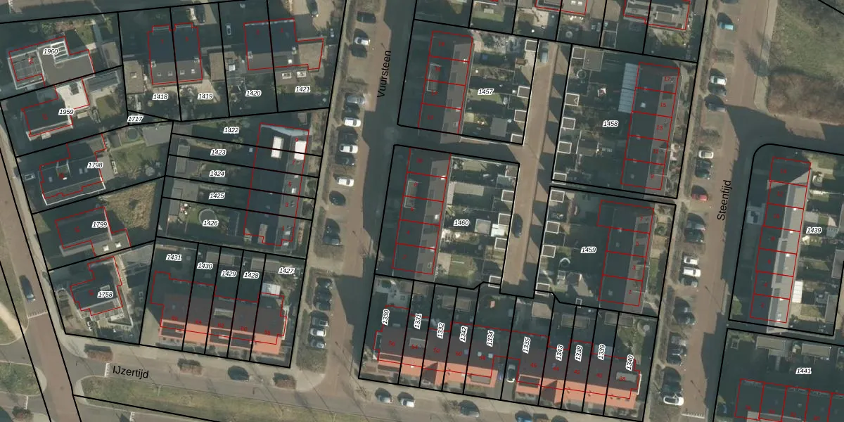 Het perceel waarop Vuursteen 6 staat heeft een oppervlakte van 920 m². Dit is een groot perceel. De perceeloppervlakte wordt geregistreerd door het Kadaster. Gedetailleerde informatie over de maten van dit perceel kunt u vinden in het rapport Kadastrale kaart met maatvoering van Vuursteen 6.