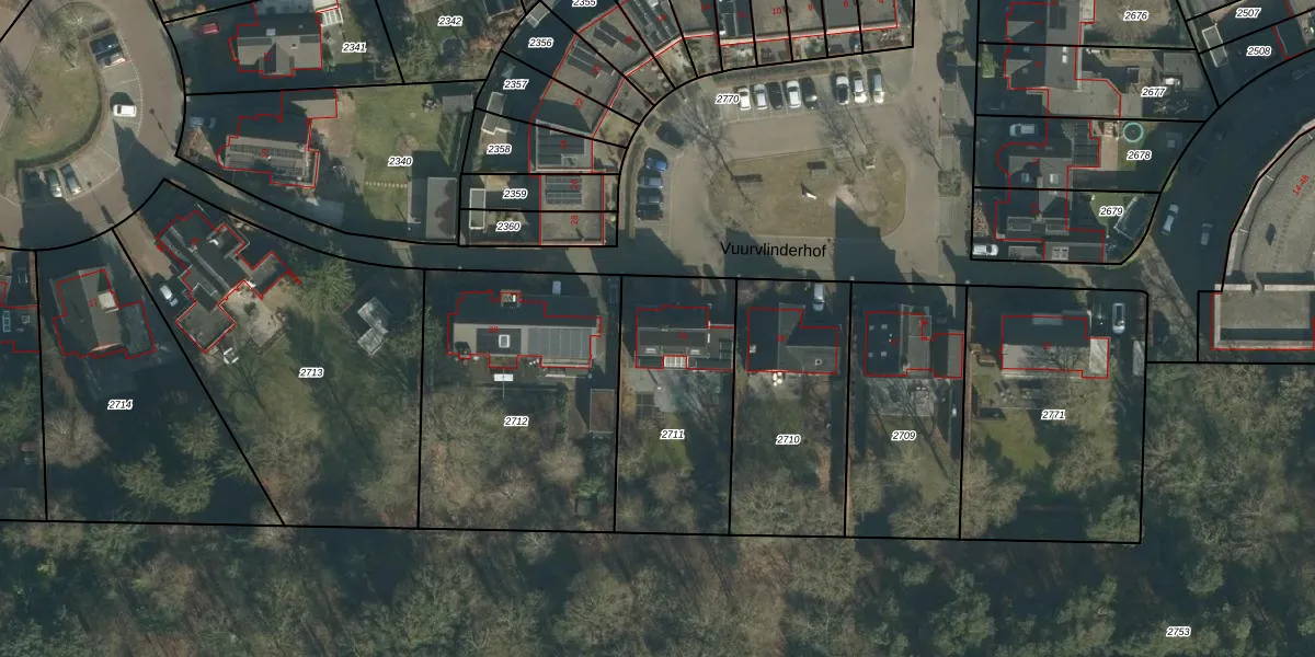 Het perceel waarop Vuurvlinderhof 21 staat heeft een oppervlakte van 685 m². Dit is een groot perceel. De perceeloppervlakte wordt geregistreerd door het Kadaster. Gedetailleerde informatie over de maten van dit perceel kunt u vinden in het rapport Kadastrale kaart met maatvoering van Vuurvlinderhof 21.