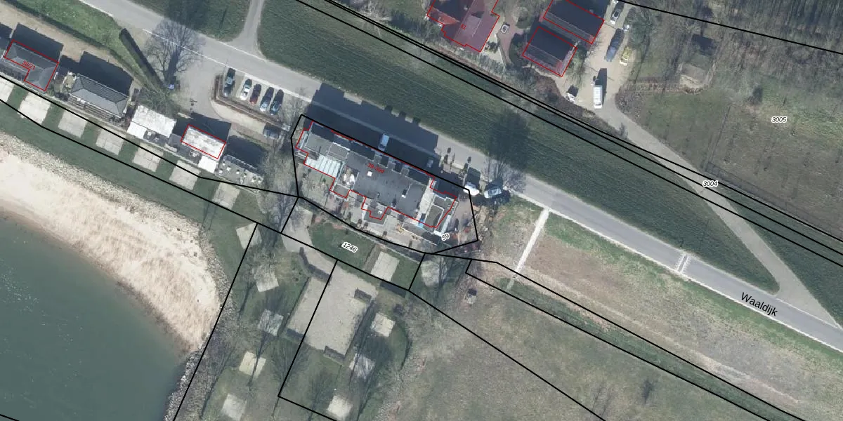 Het perceel waarop Waaldijk 39-d staat heeft een oppervlakte van 800 m². Dit is een groot perceel. De perceeloppervlakte wordt geregistreerd door het Kadaster. Gedetailleerde informatie over de maten van dit perceel kunt u vinden in het rapport Kadastrale kaart met maatvoering van Waaldijk 39-d.