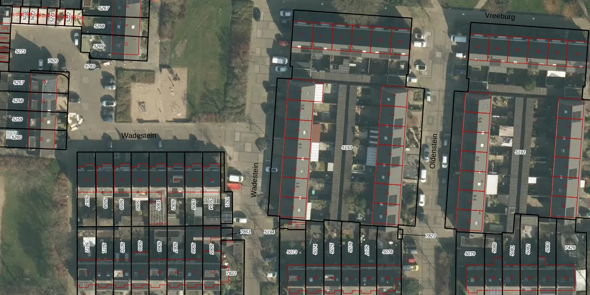 Het perceel waarop Wadestein 7 staat heeft een oppervlakte van 3300 m². Dit is een zeer groot perceel. De perceeloppervlakte wordt geregistreerd door het Kadaster. Gedetailleerde informatie over de maten van dit perceel kunt u vinden in het rapport Kadastrale kaart met maatvoering van Wadestein 7.