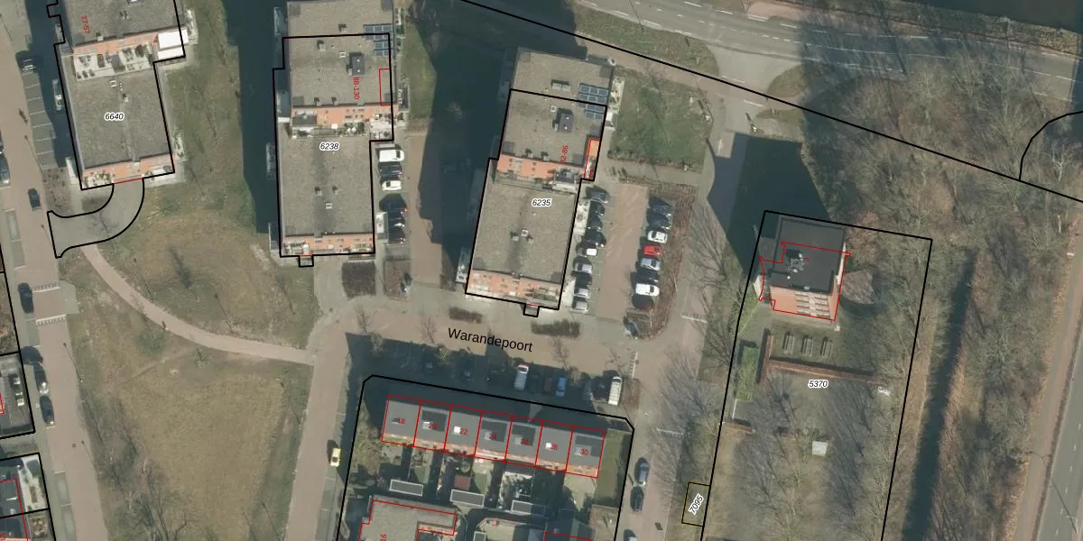 Warandepoort 40 is gelegen op kadastraal perceel OTH01M6235. Deze kadastrale aanduiding is uniek en wordt gebruikt door het Kadaster om eigendomsrechten en andere zakelijke rechten vast te leggen. Het perceel maakt onderdeel uit van de kadastrale gemeente Oosterhout.