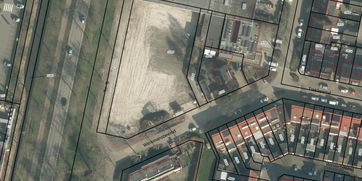 Het perceel waarop Werkmansbeemd 12 staat heeft een oppervlakte van 2845 m². Dit is een zeer groot perceel. De perceeloppervlakte wordt geregistreerd door het Kadaster. Gedetailleerde informatie over de maten van dit perceel kunt u vinden in het rapport Kadastrale kaart met maatvoering van Werkmansbeemd 12.