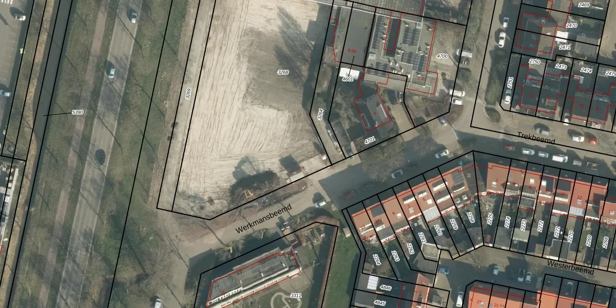 Het perceel waarop Werkmansbeemd 8 staat heeft een oppervlakte van 2845 m². Dit is een zeer groot perceel. De perceeloppervlakte wordt geregistreerd door het Kadaster. Gedetailleerde informatie over de maten van dit perceel kunt u vinden in het rapport Kadastrale kaart met maatvoering van Werkmansbeemd 8.