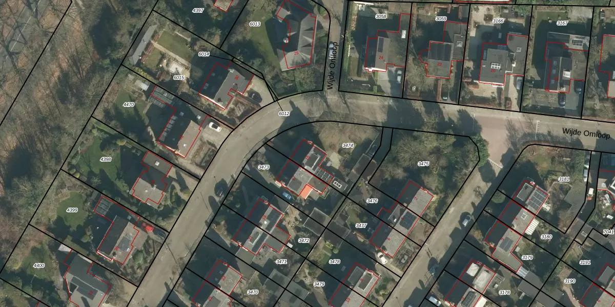 Wijde Omloop 15 is gelegen op kadastraal perceel OTH01M3474. Deze kadastrale aanduiding is uniek en wordt gebruikt door het Kadaster om eigendomsrechten en andere zakelijke rechten vast te leggen. Het perceel maakt onderdeel uit van de kadastrale gemeente Oosterhout.