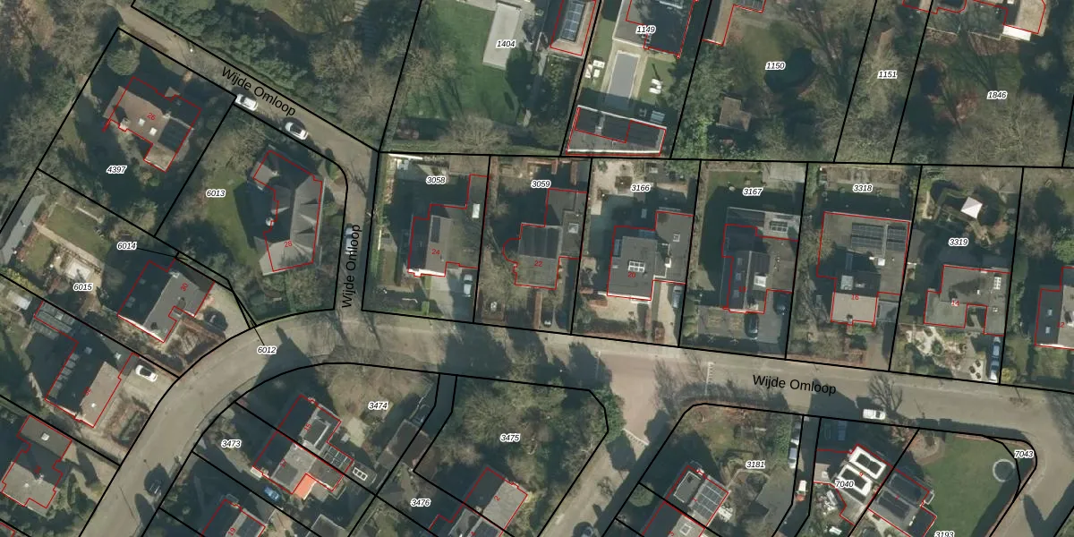 Gebruik de zoekbalk of klik op een perceel voor informatie over de adressen binnen dit perceel.