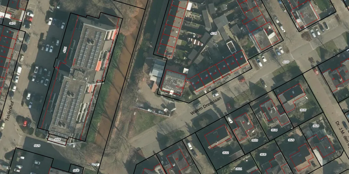 Het perceel waarop Willem Dreeslaan 110 staat heeft een oppervlakte van 4030 m². Dit is een zeer groot perceel. De perceeloppervlakte wordt geregistreerd door het Kadaster. Gedetailleerde informatie over de maten van dit perceel kunt u vinden in het rapport Kadastrale kaart met maatvoering van Willem Dreeslaan 110.