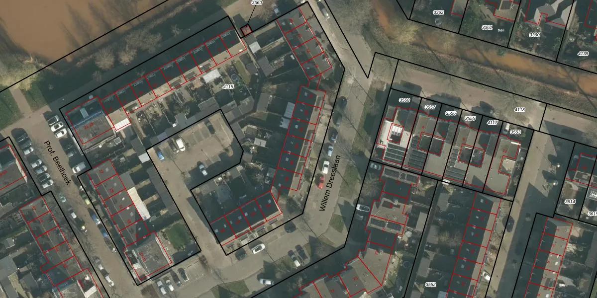 Willem Dreeslaan 84 is gelegen op kadastraal perceel OTH01C4115. Deze kadastrale aanduiding is uniek en wordt gebruikt door het Kadaster om eigendomsrechten en andere zakelijke rechten vast te leggen. Het perceel maakt onderdeel uit van de kadastrale gemeente Oosterhout.