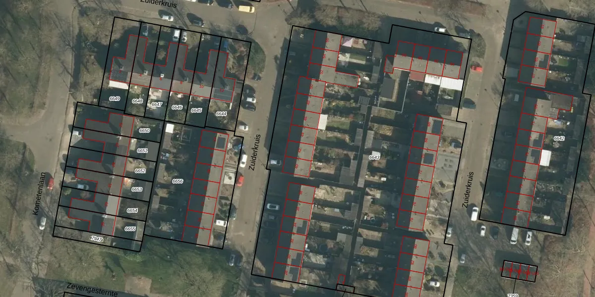 Het perceel waarop Zuiderkruis 42 staat heeft een oppervlakte van 5490 m². Dit is een zeer groot perceel. De perceeloppervlakte wordt geregistreerd door het Kadaster. Gedetailleerde informatie over de maten van dit perceel kunt u vinden in het rapport Kadastrale kaart met maatvoering van Zuiderkruis 42.