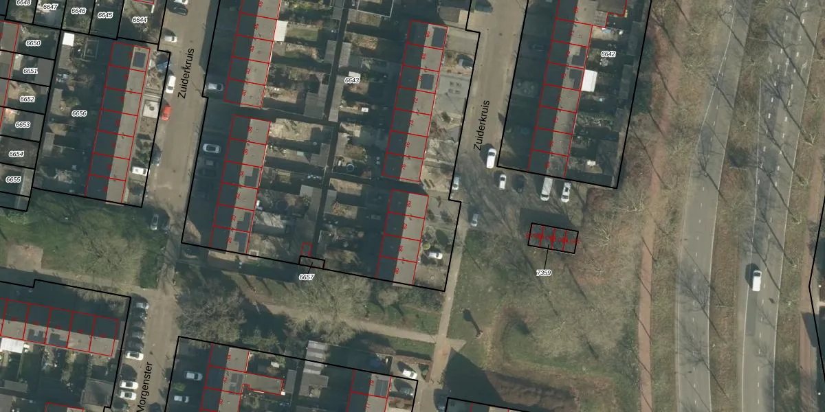 Het perceel waarop Zuiderkruis 80 staat heeft een oppervlakte van 5490 m². Dit is een zeer groot perceel. De perceeloppervlakte wordt geregistreerd door het Kadaster. Gedetailleerde informatie over de maten van dit perceel kunt u vinden in het rapport Kadastrale kaart met maatvoering van Zuiderkruis 80.