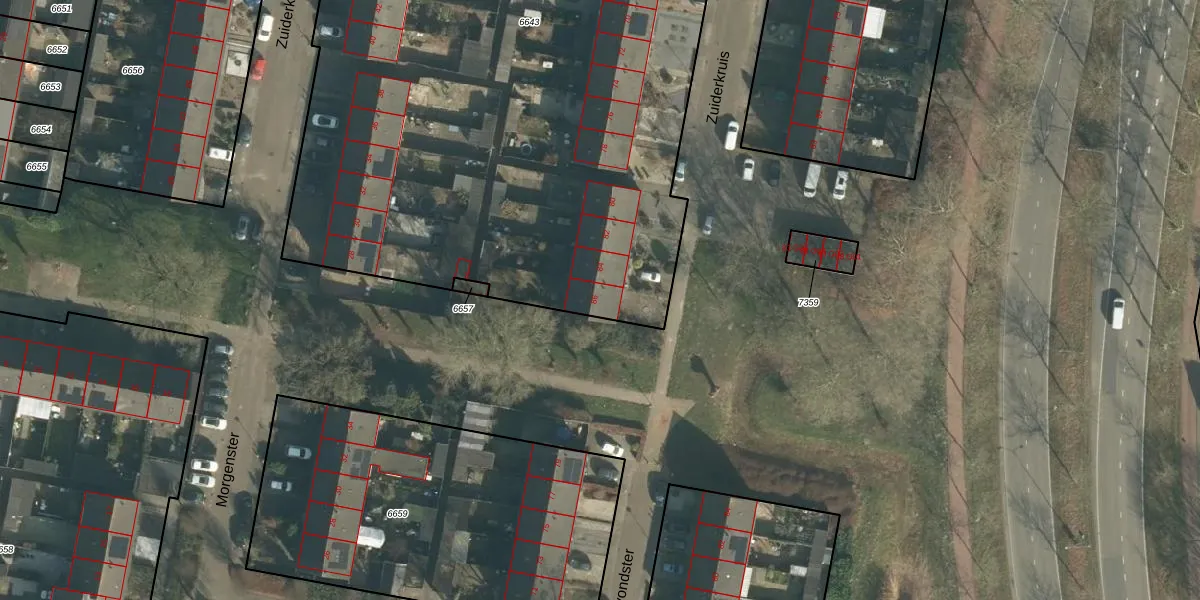 Het perceel waarop Zuiderkruis 86 staat heeft een oppervlakte van 5490 m². Dit is een zeer groot perceel. De perceeloppervlakte wordt geregistreerd door het Kadaster. Gedetailleerde informatie over de maten van dit perceel kunt u vinden in het rapport Kadastrale kaart met maatvoering van Zuiderkruis 86.