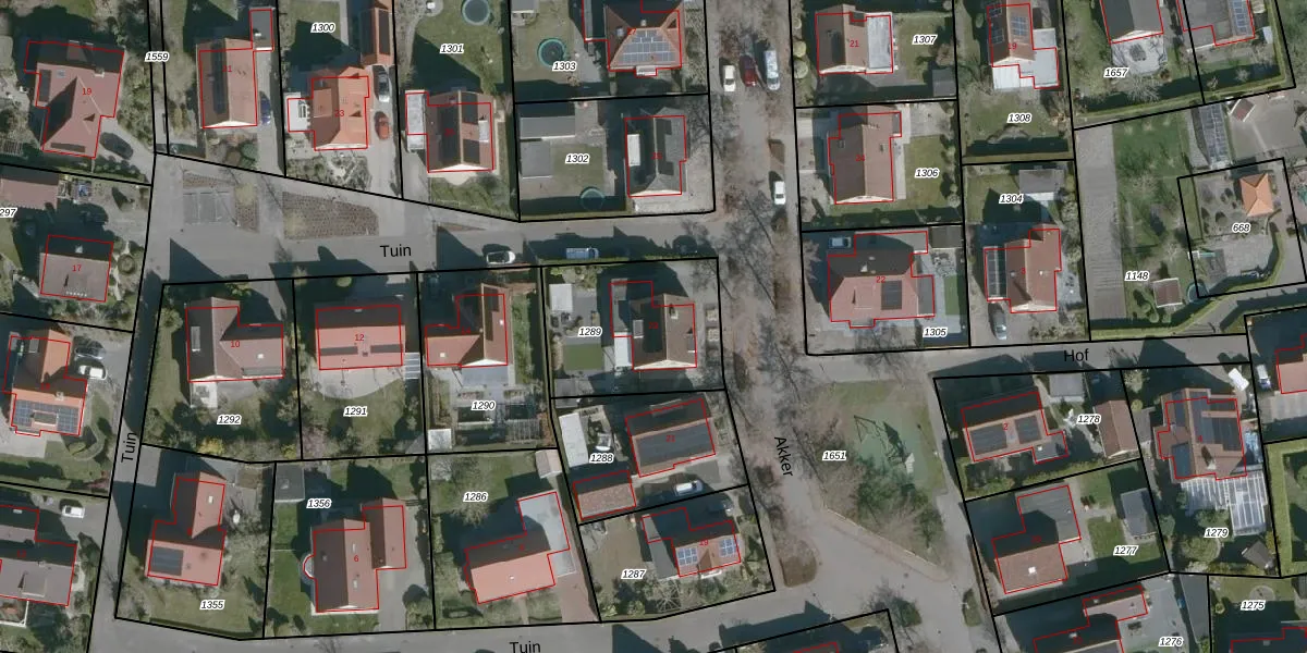 Het perceel waarop Akker 23 staat heeft een oppervlakte van 544 m². Dit is een groot perceel. De perceeloppervlakte wordt geregistreerd door het Kadaster. Gedetailleerde informatie over de maten van dit perceel kunt u vinden in het rapport Kadastrale kaart met maatvoering van Akker 23.