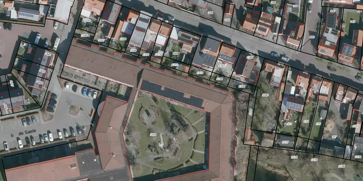 Het perceel waarop de Saele 34 staat heeft een oppervlakte van 1,1 ha. Dit is een zeer groot perceel. De perceeloppervlakte wordt geregistreerd door het Kadaster. Gedetailleerde informatie over de maten van dit perceel kunt u vinden in het rapport Kadastrale kaart met maatvoering van de Saele 34.