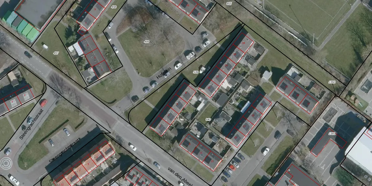 Het perceel waarop Hofplein 8 staat heeft een oppervlakte van 3955 m². Dit is een zeer groot perceel. De perceeloppervlakte wordt geregistreerd door het Kadaster. Gedetailleerde informatie over de maten van dit perceel kunt u vinden in het rapport Kadastrale kaart met maatvoering van Hofplein 8.