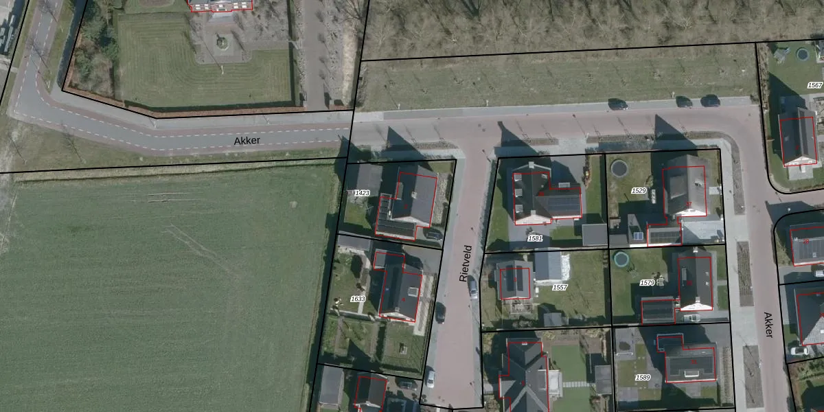 Het perceel waarop Rietveld 2 staat heeft een oppervlakte van 515 m². Dit is een groot perceel. De perceeloppervlakte wordt geregistreerd door het Kadaster. Gedetailleerde informatie over de maten van dit perceel kunt u vinden in het rapport Kadastrale kaart met maatvoering van Rietveld 2.