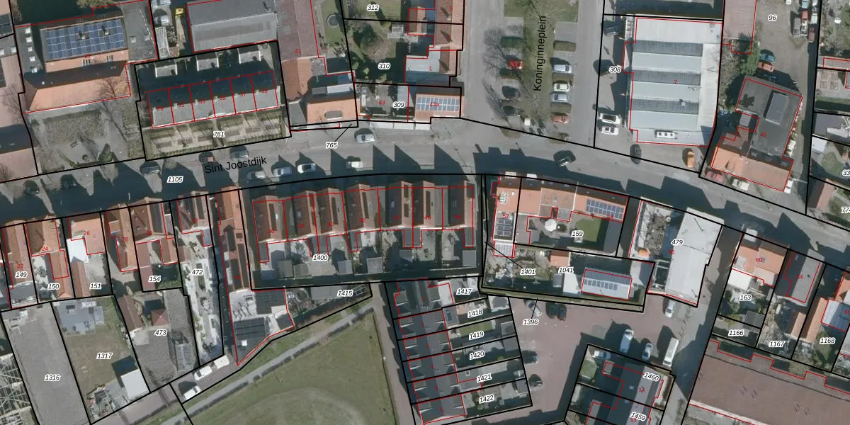 Het perceel waarop Sint Joostdijk 46 staat heeft een oppervlakte van 1388 m². Dit is een zeer groot perceel. De perceeloppervlakte wordt geregistreerd door het Kadaster. Gedetailleerde informatie over de maten van dit perceel kunt u vinden in het rapport Kadastrale kaart met maatvoering van Sint Joostdijk 46.
