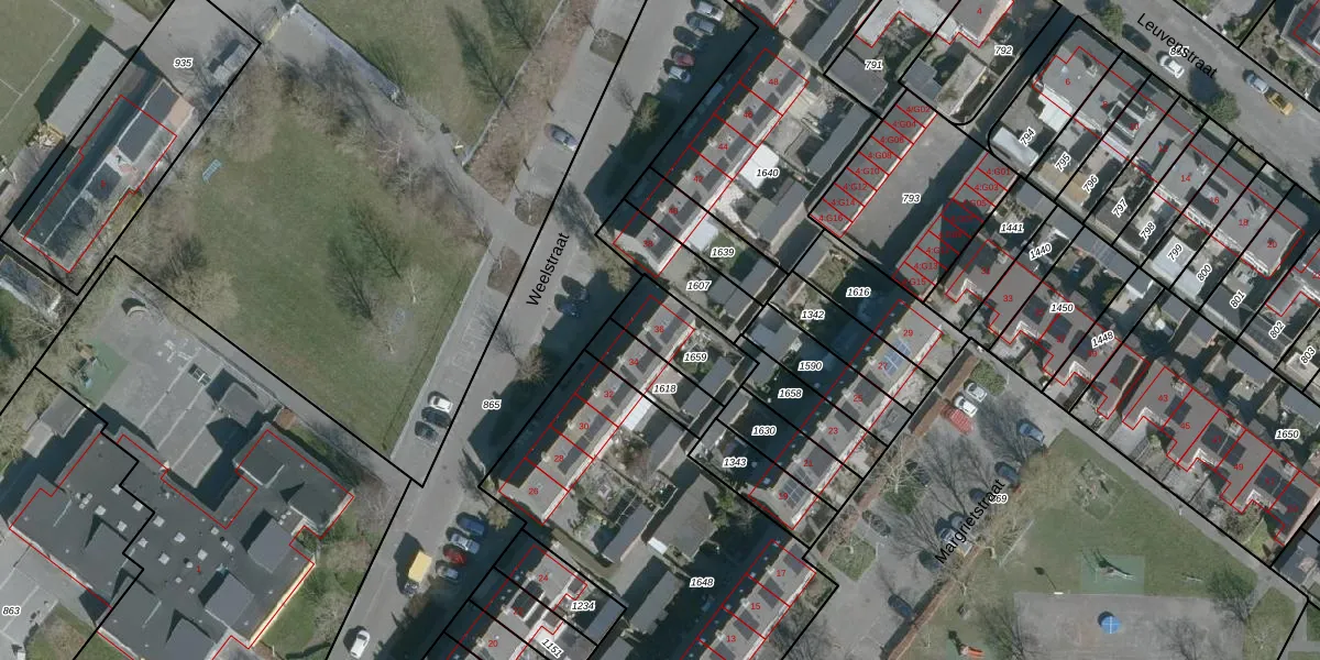 Het perceel waarop Weelstraat 36 staat heeft een oppervlakte van 186 m². Dit is een middelgroot perceel. De perceeloppervlakte wordt geregistreerd door het Kadaster. Gedetailleerde informatie over de maten van dit perceel kunt u vinden in het rapport Kadastrale kaart met maatvoering van Weelstraat 36.