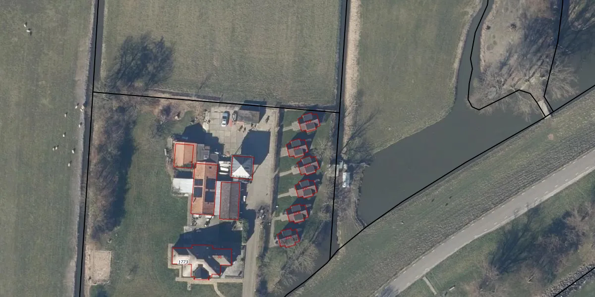 Het perceel waarop Zuiderdijk 31-E staat heeft een oppervlakte van 8270 m². Dit is een zeer groot perceel. De perceeloppervlakte wordt geregistreerd door het Kadaster. Gedetailleerde informatie over de maten van dit perceel kunt u vinden in het rapport Kadastrale kaart met maatvoering van Zuiderdijk 31-E.