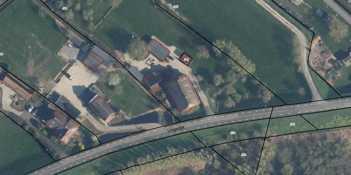Het perceel waarop Lingedijk 149 staat heeft een oppervlakte van 5085 m². Dit is een zeer groot perceel. De perceeloppervlakte wordt geregistreerd door het Kadaster. Gedetailleerde informatie over de maten van dit perceel kunt u vinden in het rapport Kadastrale kaart met maatvoering van Lingedijk 149.