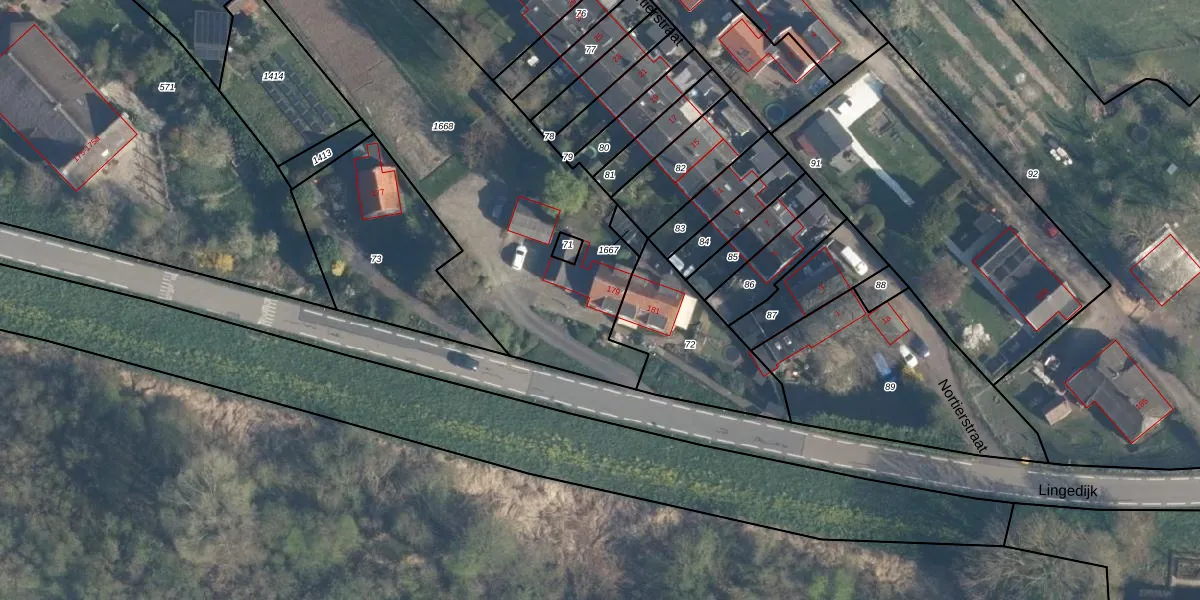 Het perceel waarop Lingedijk 179 staat heeft een oppervlakte van 2071 m². Dit is een zeer groot perceel. De perceeloppervlakte wordt geregistreerd door het Kadaster. Gedetailleerde informatie over de maten van dit perceel kunt u vinden in het rapport Kadastrale kaart met maatvoering van Lingedijk 179.