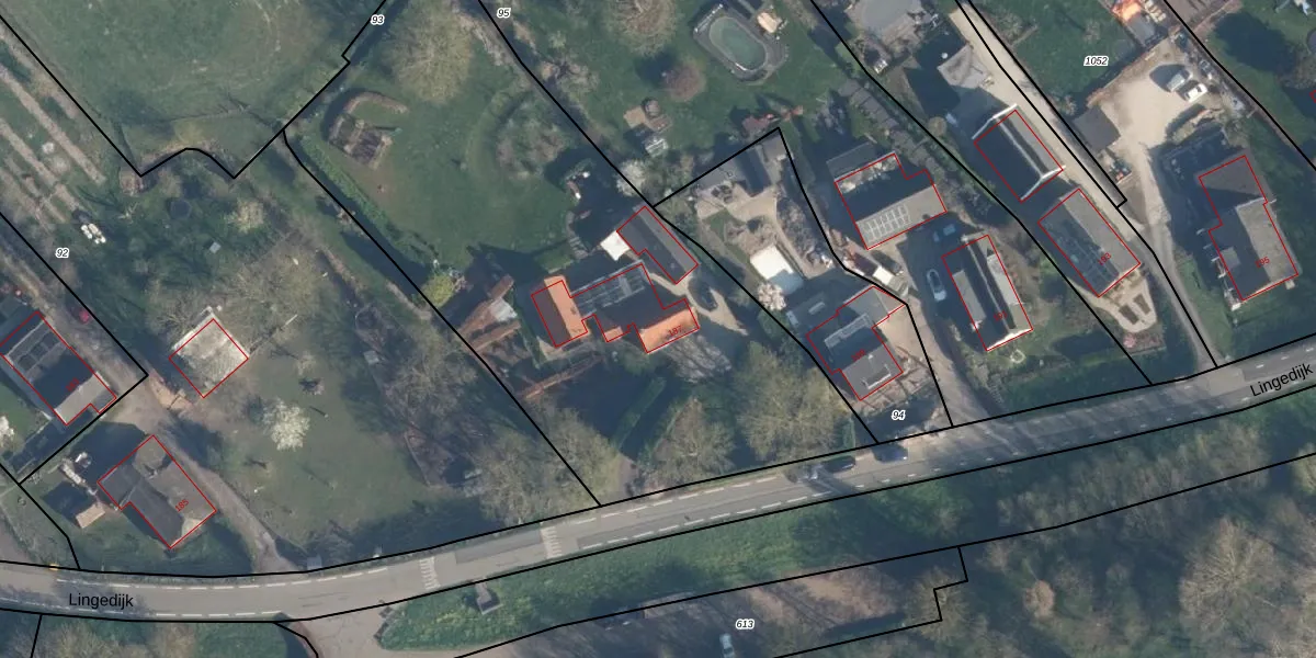 Het perceel waarop Lingedijk 187 staat heeft een oppervlakte van 3195 m². Dit is een zeer groot perceel. De perceeloppervlakte wordt geregistreerd door het Kadaster. Gedetailleerde informatie over de maten van dit perceel kunt u vinden in het rapport Kadastrale kaart met maatvoering van Lingedijk 187.