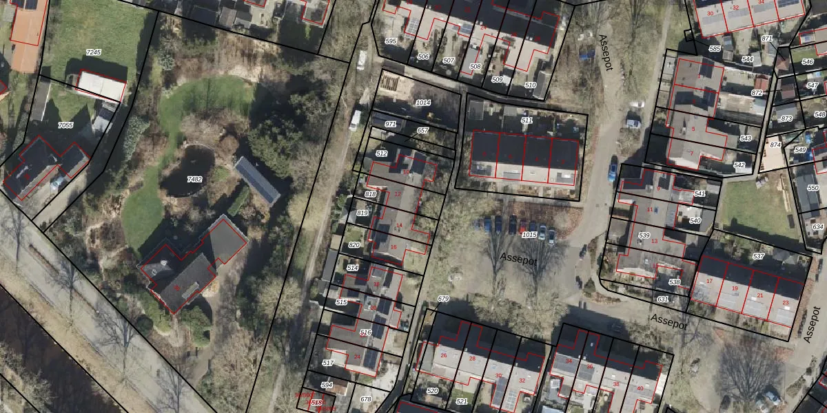 Gebruik de zoekbalk of klik op een perceel voor informatie over de adressen binnen dit perceel.